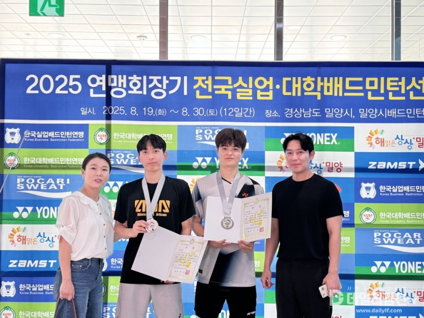 김천대학교(총장 윤옥현)는 배드민턴부(감독 김민호) 소속 노경규·추진 선수가 지난 22일 경남 밀양시 배드민턴경기장에서 열린 ‘2025 연맹회장기 전국실업·대학배드민턴선수권대회’ 남자 대학부 복식 경기에서 준우승을 차지했다고 2일 밝혔다.