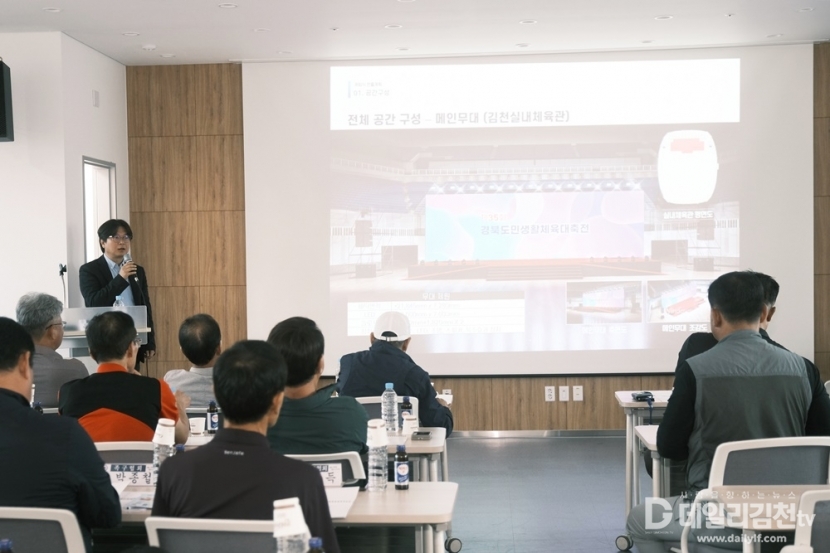 이날 보고회에는 김천시체육회 최한동 회장을 비롯해 종목단체 회장단, 김천시스포츠산업과 전성필 과장 및 관계 공무원, 대행사 상상이룸 김주석 대표 등 40여 명이 참석해 뜨거운 관심을 보였다. 회의는 체육회 류완식 부장의 사회로 내빈소개와 인사말, 추진경과보고, 대행사 보고, 자유토론 순으로 진행됐다.