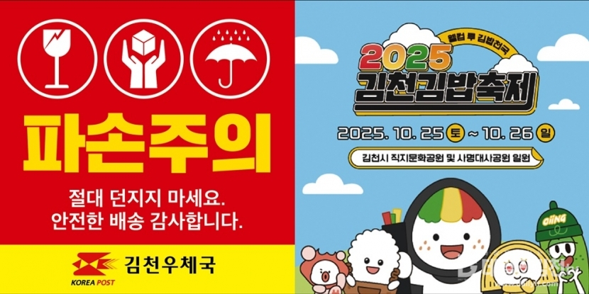 양 기관은 신규 사업으로 우체국 택배 박스에 축제 홍보스티커를 부착하는 사업을 추진한다. 김천 특산물 포도 택배 물량이 집중되는 9월부터, 우체국 택배 발송 시 사용되는 파손주의 스티커에 김천김밥축제 홍보 이미지를 함께 삽입하여 전국 각지로 발송된다.