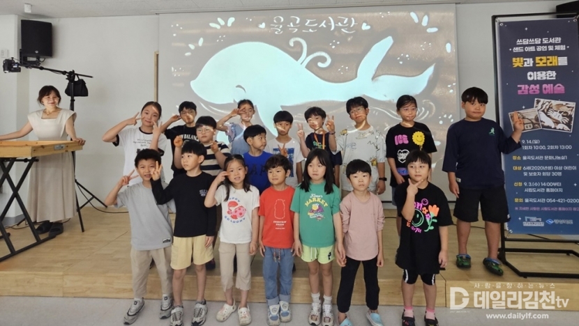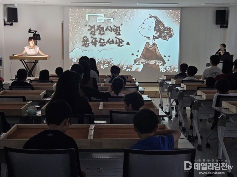 김천시립율곡도서관(관장 이신기)은 지난 14일 두 차례에 걸쳐 샌드아트 공연 및 체험 「빛과 모래를 이용한 감성 예술」을 성황리에 운영했다.