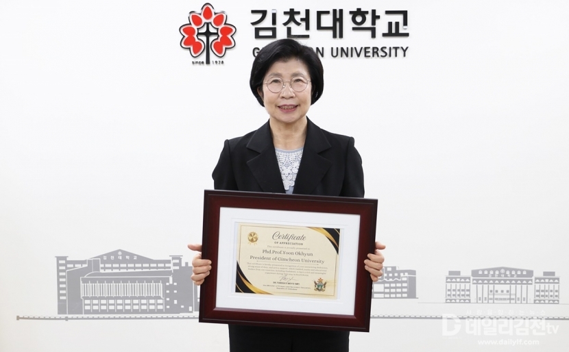 김천대학교 윤옥현 총장이 아프리카 짐바브웨 교육부 장관 표창을 수상했다. 이번 수상은 글로벌 투어 프로그램을 적극 지원하고 성공적으로 이끈 공로를 인정받은 것이다.