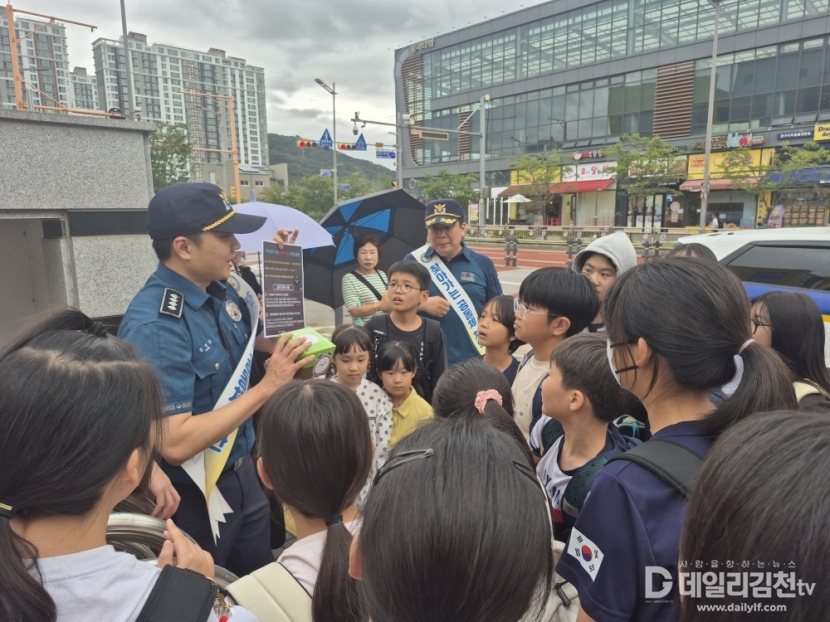김천경찰서는 최근 전국적으로 초등학교 주변에서 미성년자를 대상으로한 약취․유인 범죄가 발생하고 있어 학교 및 통학로 주변 취약지역을 대상으로 범죄예방 활동을 강화하고 있다.