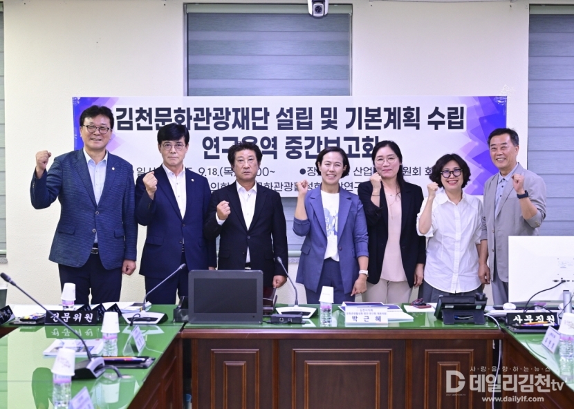 김천시의회 연구단체인‘김천시 문화․관광 활성화 방안 연구회’(대표의원 박근혜)는 9월 18일 김천시의회 산업건설위원회 회의실에서‘김천 축제․관광 산업 활성화를 위한 연구용역 중간보고회’를 개최했다.