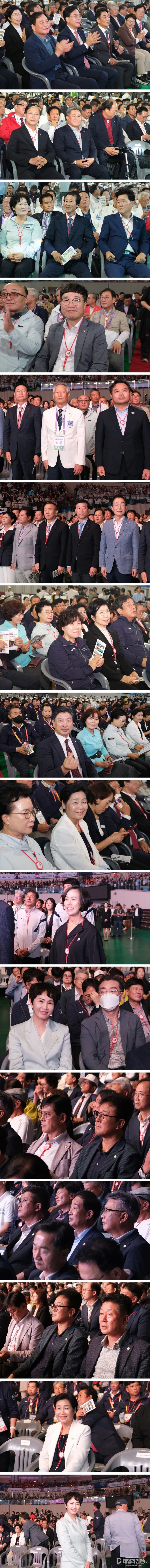 개회식은 김천실내체육관에서 열렸다. 인기 트로트 가수 별사랑과 설하윤이 식전 무대를 흥겹게 열어 분위기를 달군 뒤, 개회 선언과 선수단 입장, 내빈 축사 등이 이어졌다.