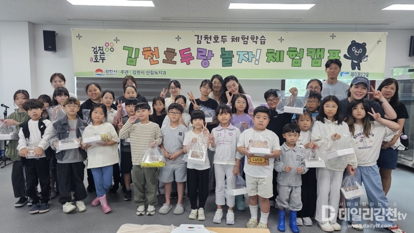 김천시는 지난 20일부터 21일까지 이틀간 김천호두시험림에서 김천 지역 초등학생 100여 명을 대상으로 제4회 김천 호두랑 놀자 체험캠프를 개최했다.