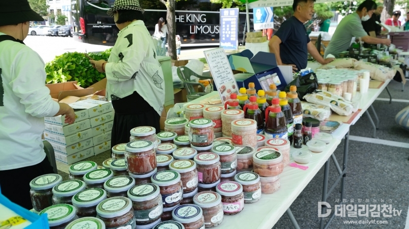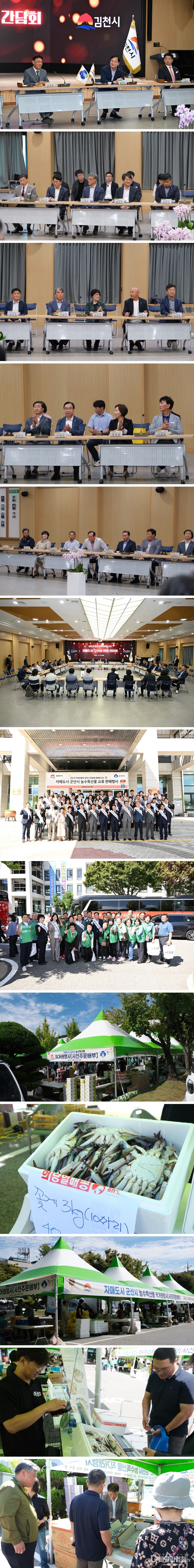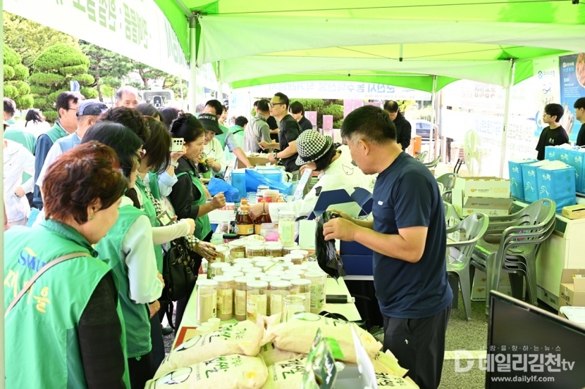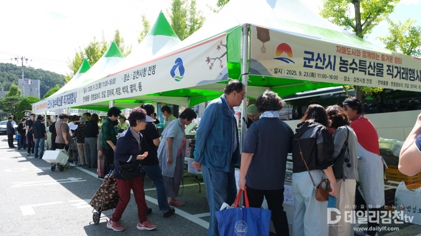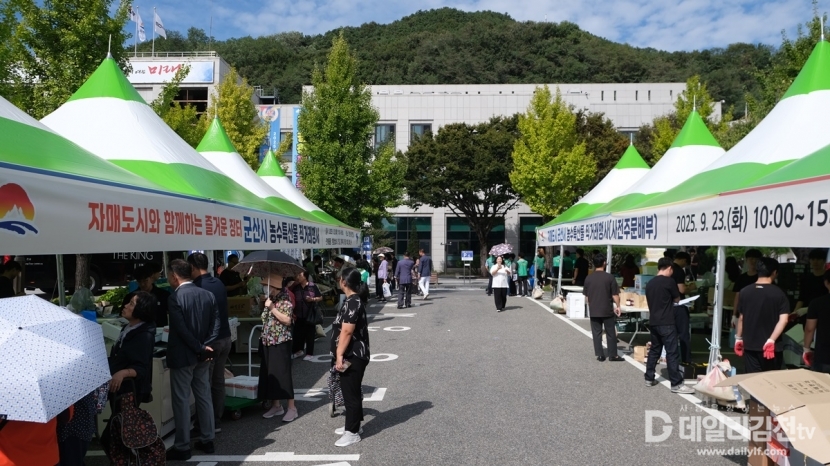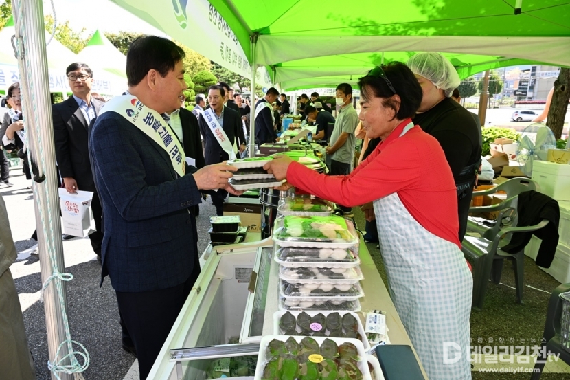 김천시(시장 배낙호)는 23일 자매도시 군산시를 초청해 시청 전정에서 자매도시 군산시의 농수특산물 직거래 행사를 성황리에 개최했다.