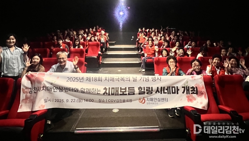 김천시치매안심센터는 지난 22일 9월 치매 극복의 달을 맞이해 관내 영화관(김천 율곡 CGV)에서 치매 보듬 마을 주민과 치매 환자가 함께하는 치매 극복 주간 문화 행사 「치매 보듬 힐링 시네마」를 개최했다.