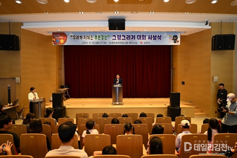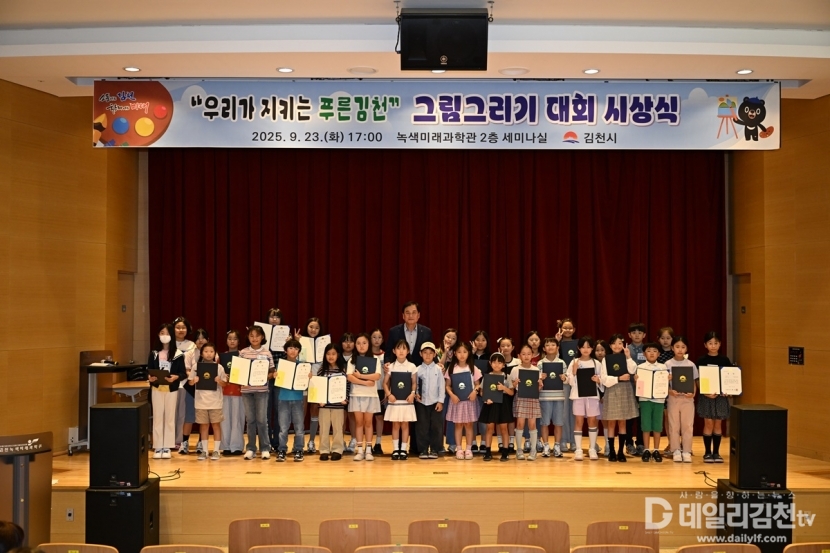 김천시(시장 배낙호)는 지난 23일 녹색미래과학관에서 ‘우리가 지키는 푸른 김천’ 그림그리기 대회 시상식을 개최했다.