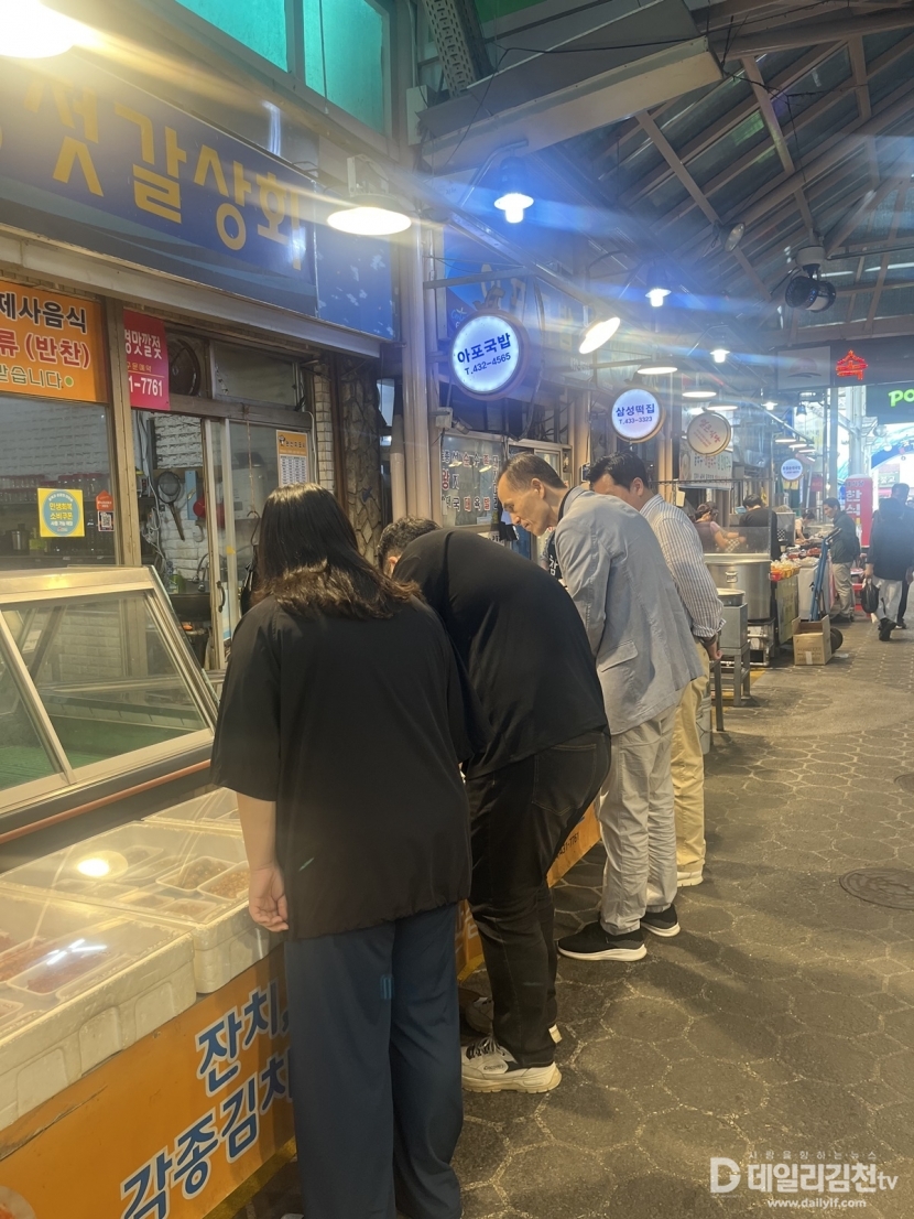 이날 장보기 행사에는 직원 10여 명이 참여해 지역화폐인 김천사랑카드를 활용하여 농수산물과 제수용품, 먹거리 등을 구입하고 시장 내에 위치한 식당을 이용하며 시장 상인을 응원했다.