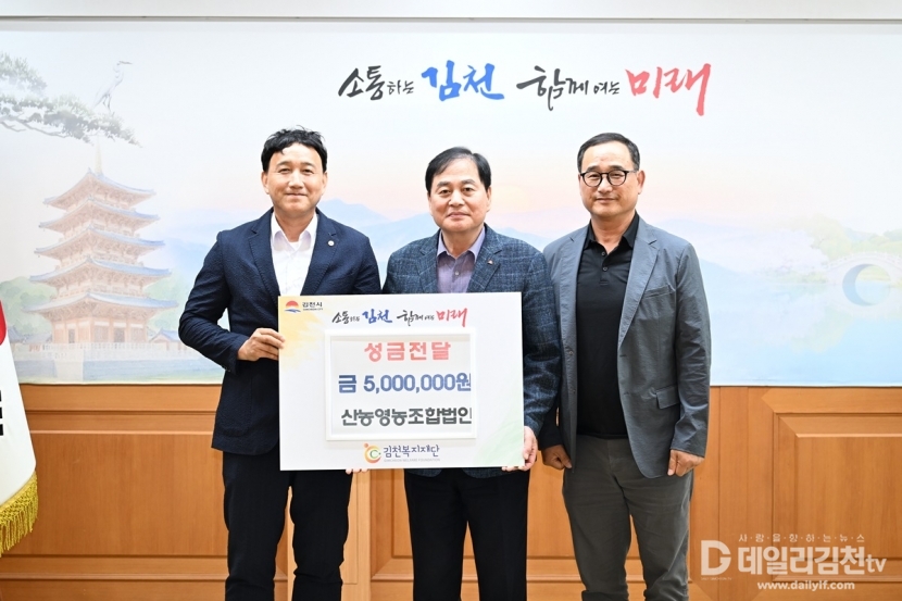 김천복지재단(이사장 배낙호)은 지난 24일 산농영농조합법인(대표이사 여종현)으로부터 성금 500만 원을 전달받았다고 밝혔다.