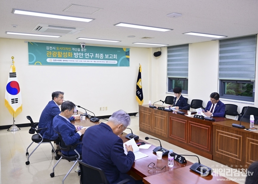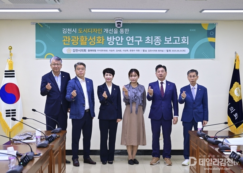 김천시의회(의장 나영민) 의원연구단체인‘김천 디자인UP 연구회(우지연·이승우·김세호·이상욱·윤영수 의원)’는 25일 『김천시 도시디자인 개선을 통한 관광활성화 방안 연구』 최종보고회를 개최했다.