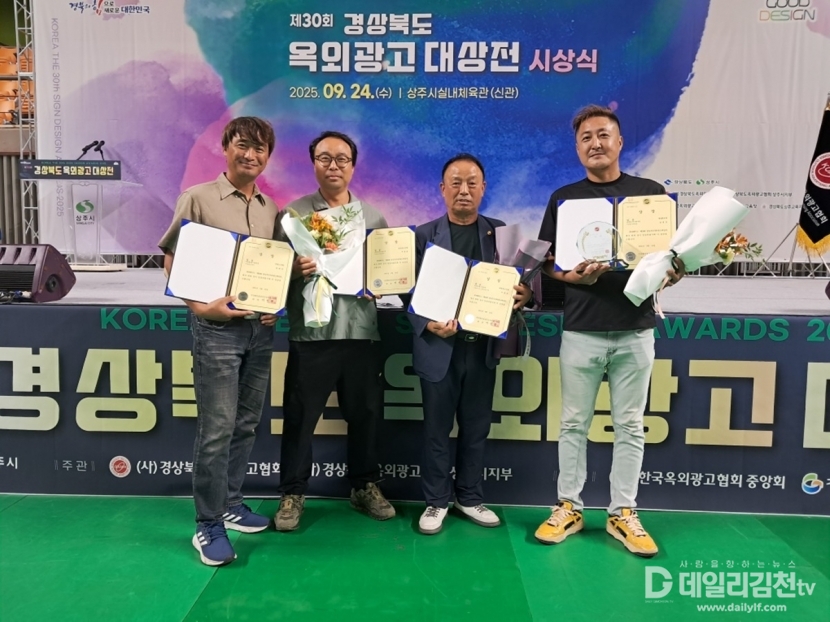 김천시(시장 배낙호)는 「제30회 경상북도 옥외광고대상전」에서 지역 옥외광고 사업자가 출품한 창작광고물이 특선 2점, 입선 3점을 각각 수상했다고 밝혔다.