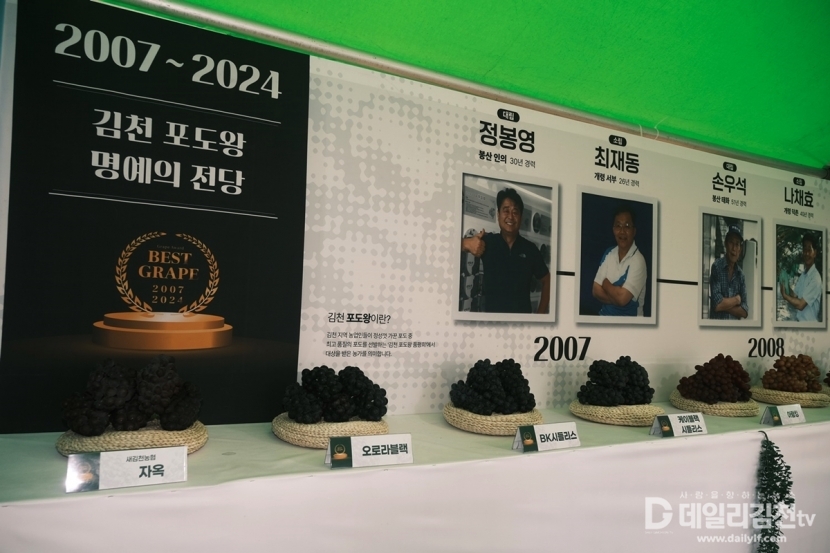 이번 축제현장 명예의 전당에는 올해 포도 품평회 수상자의 포도와 함께 역대 수상자들을 기리는 부스도 마련됐다.