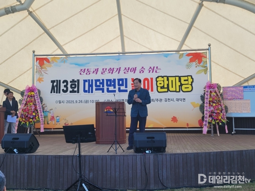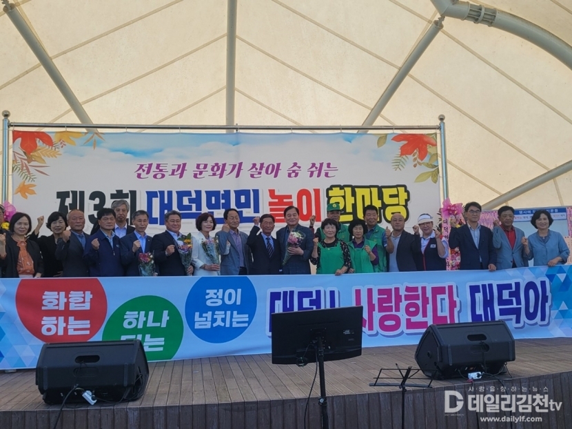 김천시 대덕면(면장 홍영기)은 지난 26일 대덕면 야외공연장에서 주민 800여 명이 참여한 가운데 제3회 대덕면민 놀이 한마당 행사를 성황리에 개최했다고 밝혔다.