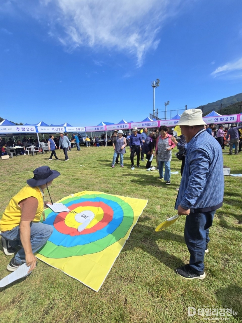 행사는 식전 마을 소개와 대덕면 농악단 공연, 지역가수 기민정의 무대로 시작해 분위기를 돋웠다. 이어진 개회식 후에는 신발 양궁, 고리 던지기, 윷놀이 등 다양한 전통 놀이와 마을별 노래자랑이 진행돼 웃음과 활기가 넘쳤다. 특히 주민 재능기부로 아코디언, 색소폰, 라인댄스 공연이 더해져 축제의 분위기를 한껏 고조시켰다.