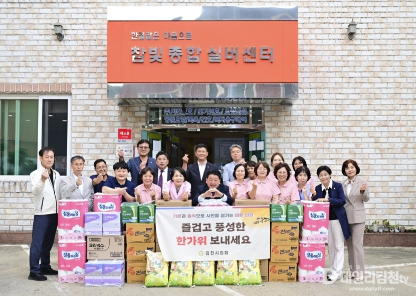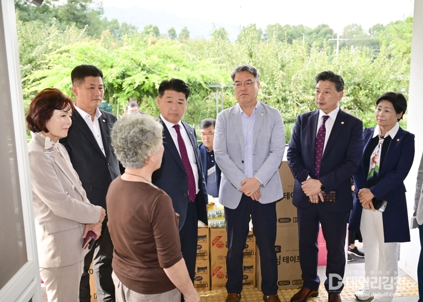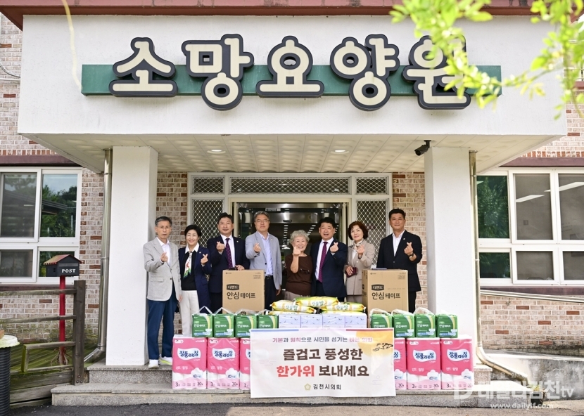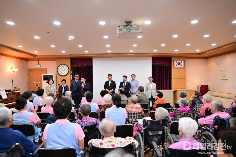 김천시의회(의장 나영민)는 30일 추석 명절을 앞두고 관내 복지시설인 구성면 소망요양원과 부곡동 참빛종합실버센터를 방문해 이용자 및 직원들을 격려하는 시간을 가졌다.