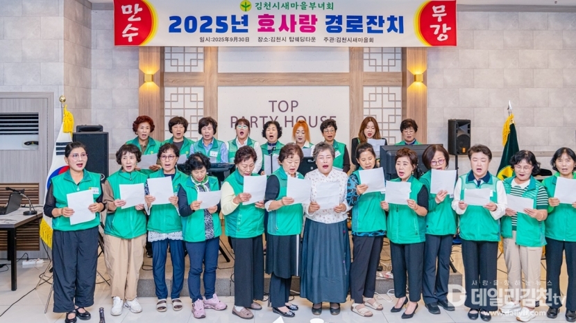 한편, 김천시 새마을부녀회는 이날 진행한 효 사랑 경로잔치 외에도 효 사랑 밑반찬 나눔 활동, 사랑의 김장 담그기 등 다양한 활동을 펼치며 어르신 및 취약계층을 위한 봉사를 꾸준히 이어오고 있다.