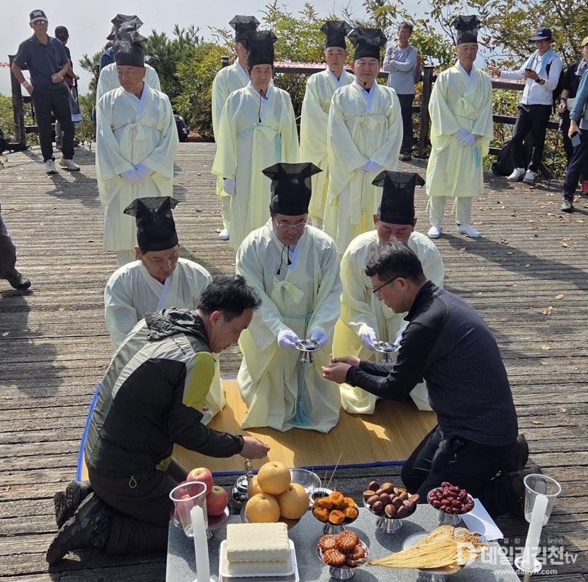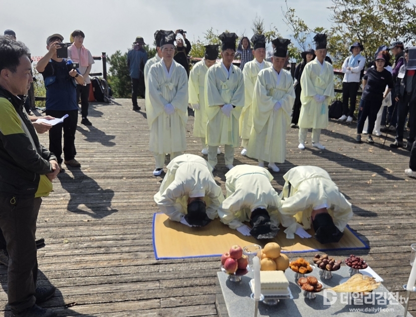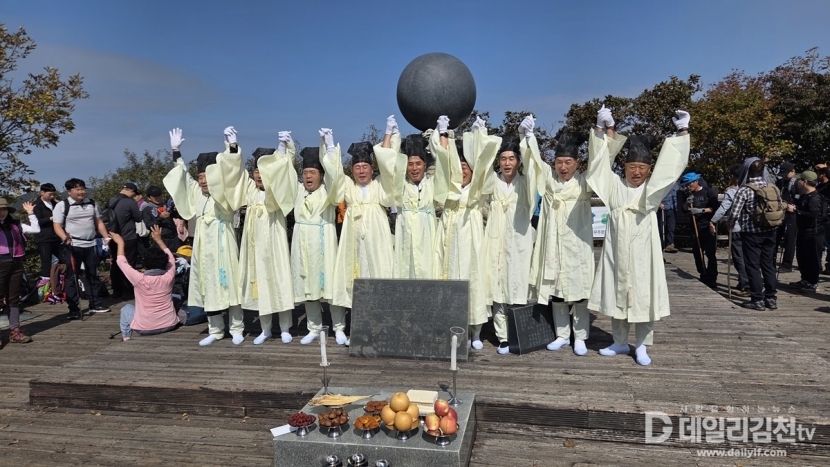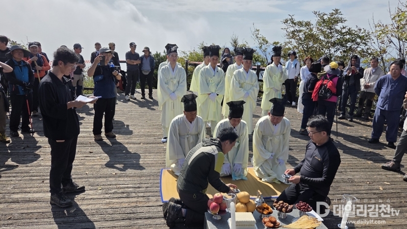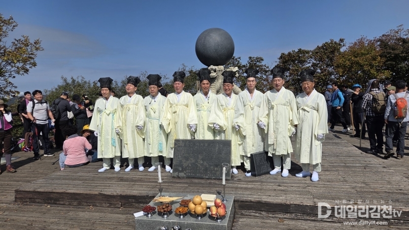 ‘삼도봉 만남의 날’은 경북 김천시, 충북 영동군, 전북 무주군이 매년 돌아가며 주관해 온 행사로, 올해로 37회를 맞았다. 행사장에 세워진 거북과 용, 검은 여의주가 상징된 기념탑 아래에서 주민들은 기원제를 지내고, 각 지역의 문화와 현안을 공유하며 화합과 교류의 의미를 되새겼다.