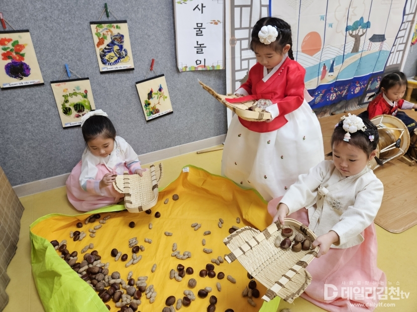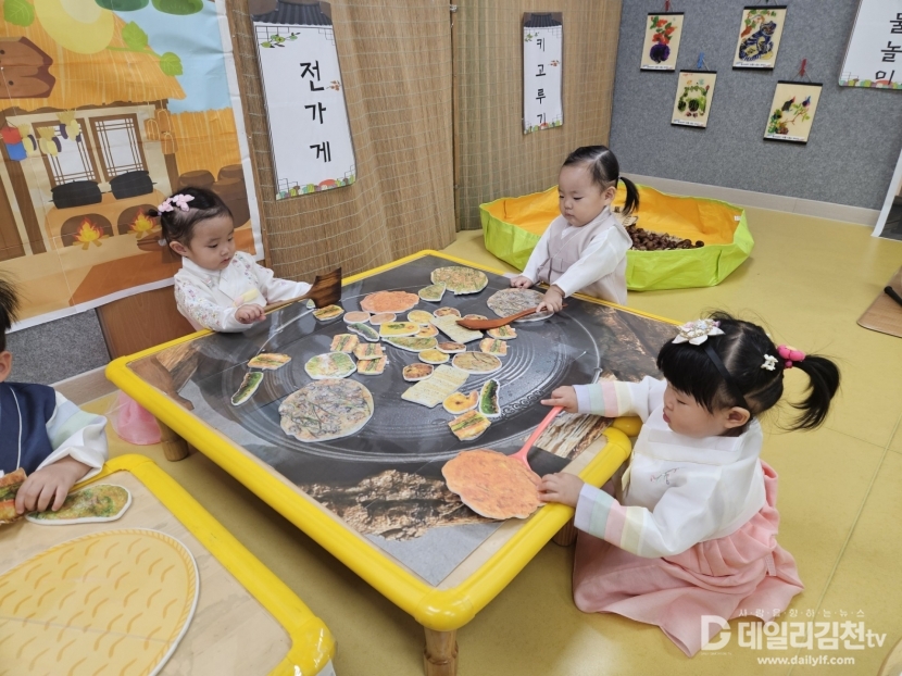 어린이집에서는 추석 명절을 맞이하여 한복을 차려입고 송편 만들기, 전 만들기, 차례 지내기, 전통 민속놀이 체험하기 등 다양한 프로그램을 진행하며 풍성한 음식을 나누고 가족과 함께하는 명절의 의미를 되새기는 시간을 가졌다.
