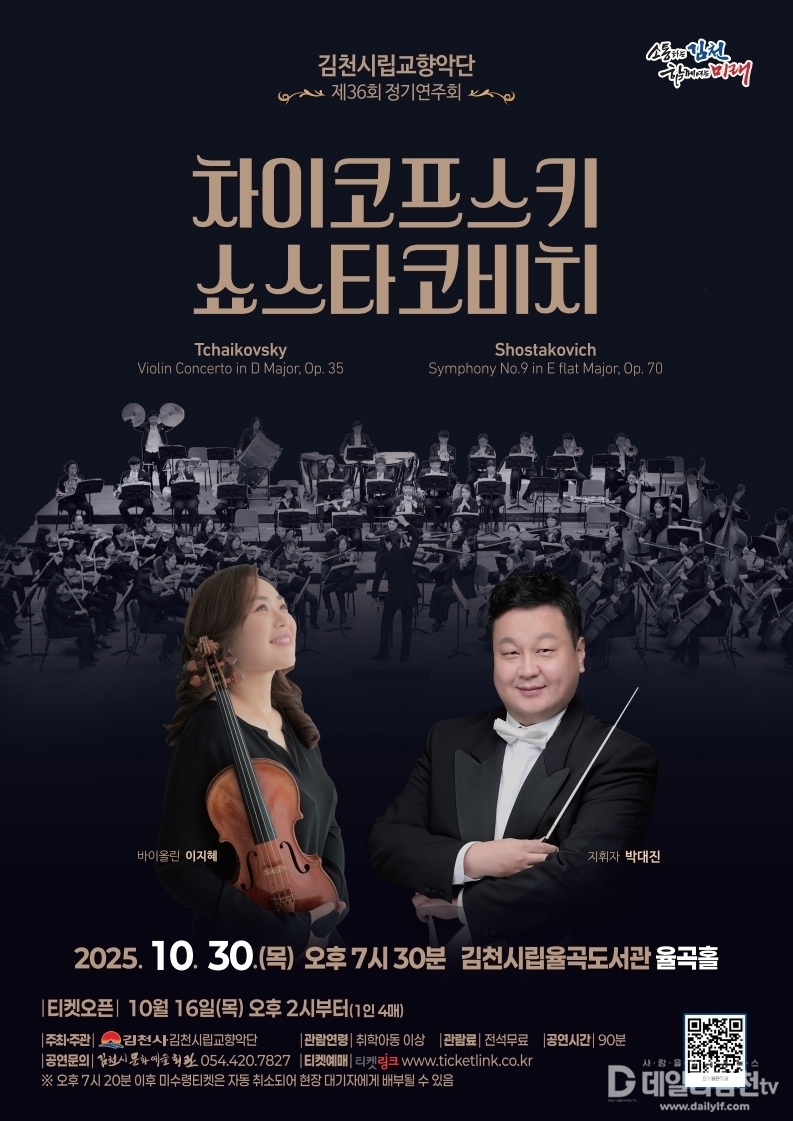 김천시문화예술회관(관장 김해문)은 30일 오후 7시 30분에 시립율곡도서관 2층 율곡홀에서 시립교향악단 제36회 정기연주회를 개최한다.
