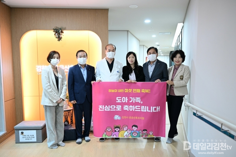 배낙호 김천시장을 비롯해 정용구 원장(김천의료원), 김흥수 조합장(김천축산업협동조합)은 지난 14일 김천시 공공산후조리원을 직접 방문하여 축하의 뜻을 전하며, “이번 여섯째 아이의 탄생은 단순한 가족의 기쁨을 넘어, 저출산 시대에 전한 진정한 희망의 메시지”라며, “다자녀 가정은 지역사회의 소중한 자산인 만큼, 앞으로도 다양한 지원과 관심을 아끼지 않겠다”라고 밝혔다.