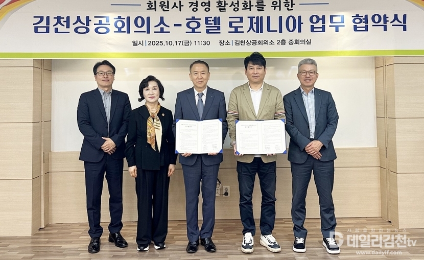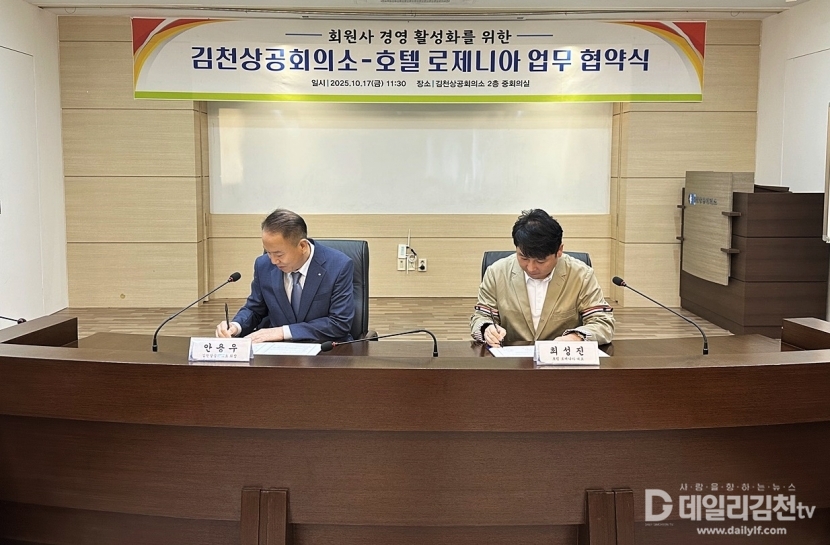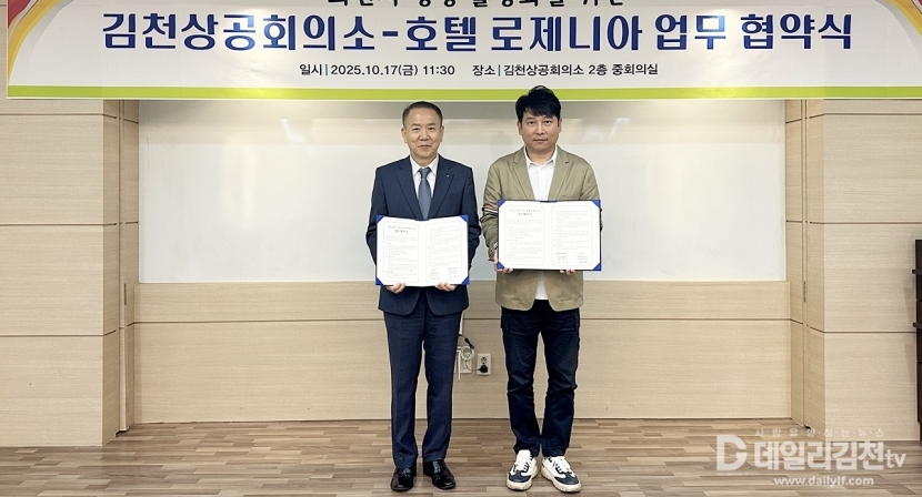 김천상공회의소(회장 안용우)는 지난 17일 로제니아 호텔과 업무협약을 체결했다.