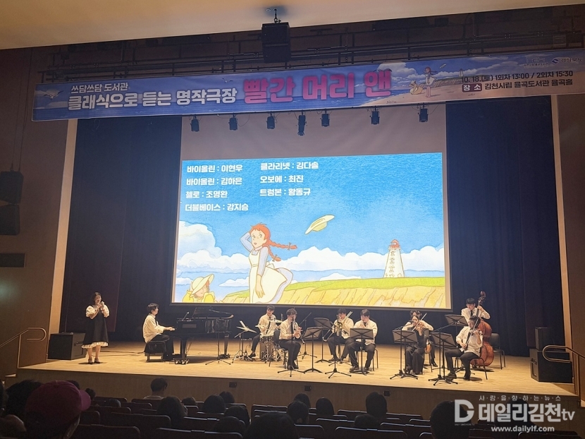김천시립 율곡도서관(관장 이신기)은 지난 18일 율곡도서관 율곡홀에서 클래식으로 듣는 명작 극장 「빨강 머리 앤」 공연을 성황리에 개최했다.