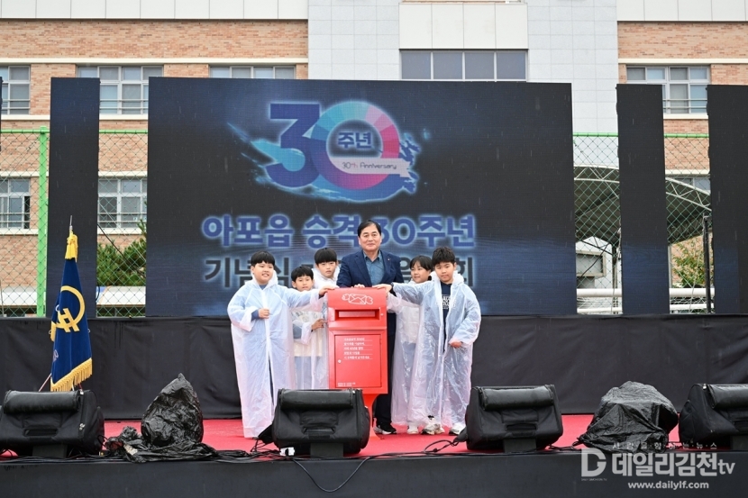 이어 지난 30년 동안의 아포의 발전상을 느낄 수 있는 기념 영상 상영이 진행됐으며, 이어진 기념 퍼포먼스 ‘10년 뒤의 나에게 보내는 편지’에서는 배낙호 시장과 아포초등학교 3학년 학생들이 무대에 올라 직접 쓴 편지를 타임캡슐 우체통에 넣는 상징적인 행사를 진행했다. 이 타임캡슐 우체통은 10년 후인 아포읍 승격 40주년에 다시 개봉될 예정으로, ‘미래를 향한 아포읍의 희망과 비전’을 담은 의미 있는 시간을 위해 마련되었다.
