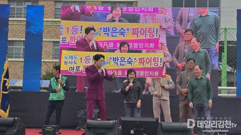 2부 ‘제8회 가을 음악회’에서는 마술쇼, 난타, 트로트 등 다채로운 공연이 펼쳐졌으며, 지역 예술단과 읍민 노래자랑, 초청 가수들의 무대가 이어졌다. 특히 읍민 노래자랑에서는 각 마을을 대표해 참가한 주민들이 평소 숨겨왔던 노래 실력을 마음껏 발휘하며 관객들의 큰 호응을 얻었다. 무대에 오른 주민들은 트로트, 발라드 등 다양한 장르를 선보이며 공연자와 관객이 하나 되는 화합의 분위기를 만들어냈고, 관람객들은 열띤 박수와 환호를 보내며 행사장은 그야말로 웃음과 흥이 넘치는 축제의 장이 되었다.
