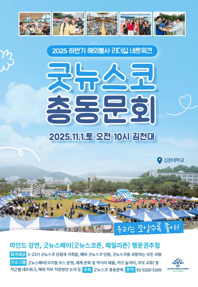 총동문회에는 국내외 굿뉴스코 동문 약 1,500여 명이 참석할 예정으로, 해외봉사로 맺은 인연을 다시 이어가며 교류의 장이 될 전망이다.