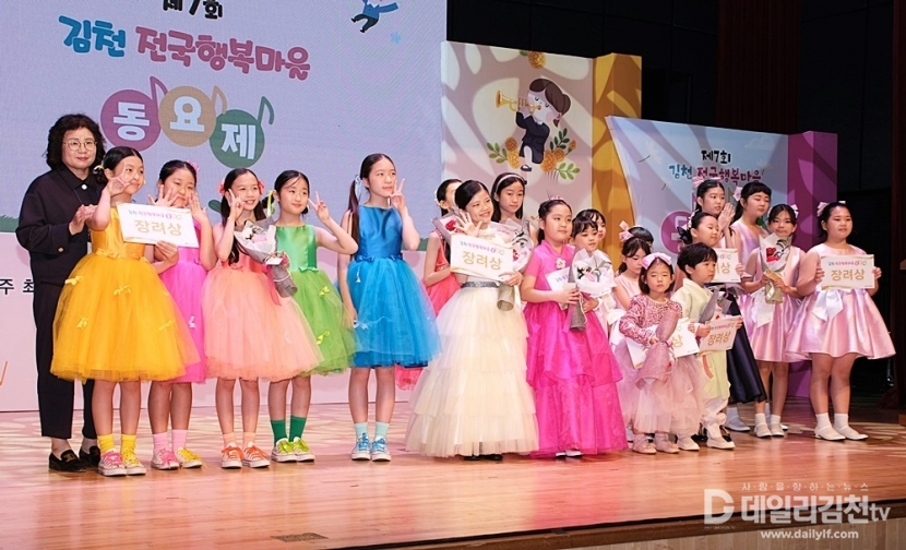 맑고 아름다운 동심의 노랫소리가 김천을 가득 메웠다. 지난 25일 김천시문화회관 공연장에서 제7회 김천 전국 행복마을 동요제 결선 및 시상식이 성황리에 개최됐다. 김천시가 주최하고 김천시동요연합회(회장 김명옥)가 주관한 이번 동요제는 전국 유치부 및 초등학생들이 참가해 열띤 경연을 펼쳤으며, 동요를 통한 순수한 행복을 시민들과 함께 나눴다.