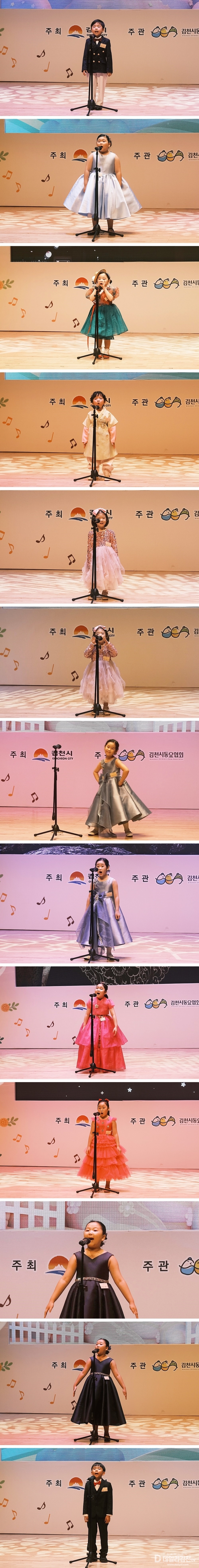 이날 행사는 박보경 아나운서의 사회로 독창 참가자 20명의 자유곡과 지정곡 '행복마을김천' 을 차례로 진행했다. 잠시 휴식 후 중창 7개팀의 무대와 김천시가족센터 '청개구리합창단', 페도라 솔리스트 앙상블 가곡, 가수이자 뮤지컬배우인 Bella J 등 3개팀의 특별축하무대를 가졌으며 오후 5시부터 시상식이 이어졌다. 시상의 자리에서 김명옥 김천시동요연합회장과 나영민 김천시의회 의장, 최복동 김천예총회장, 김영택 문화홍보실장의 축사와 격려사가 이어져 참가 어린이들과 가족들에게 응원의 메시지를 전했다.
