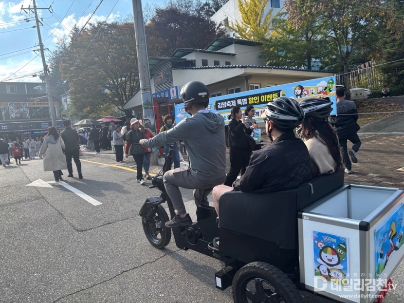 이번 김천김밥축제에서는 총 8대의 화물용 전기자전거를 투입하여 행사 물품을 운반하고, 길거리에 버려진 쓰레기를 청소하는 등 축제 전 과정에서 다양한 역할을 수행했다.