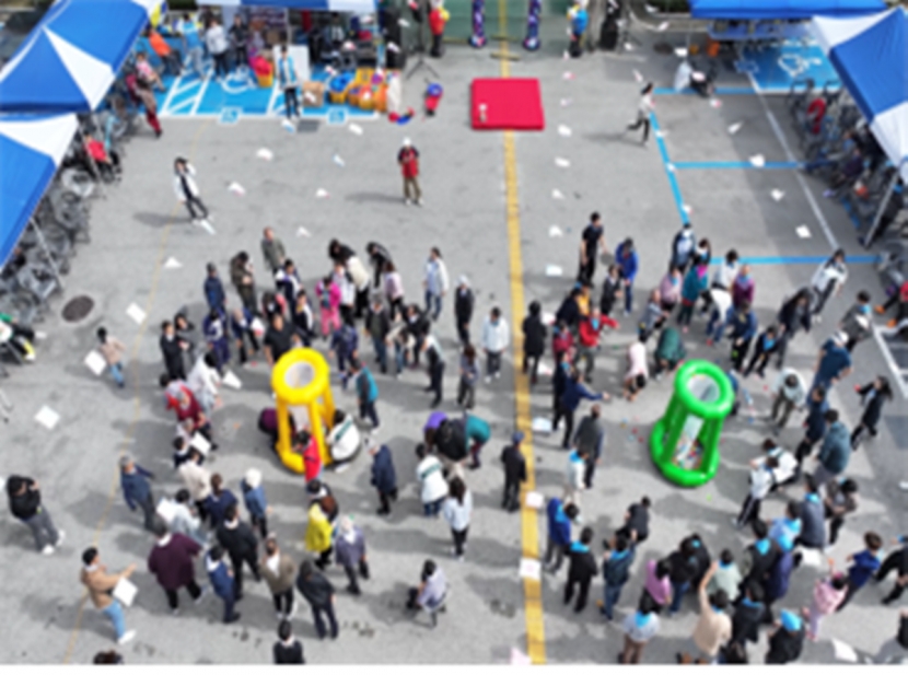 김천시장애인종합복지관(관장 안민)은 지난 23일 복지관 마당에서 이용자와 가족, 지역주민 등 200여 명이 참여한 가운데 ‘2025년 가을운동회 및 가왕대전’을 개최했다.