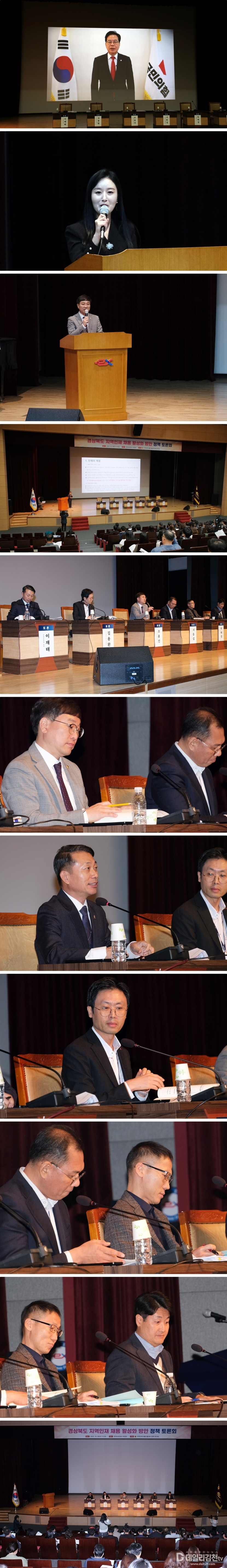 이어 광주·전남 사례를 공유한 이재태 전라남도의회 의원, 공공기관의 입장을 대변한 한국전력기술 김용환 인사팀장, 경상북도 지역인재 육성 정책을 소개한 서동섭 팀장, 도내 대학의 역할을 강조한 영남대학교 박태경 교수와 국립경국대학교 전용주 취업진로본부장 등이 열띤 토론을 벌였다. 토론자들은 공통적으로 이전기관-대학-지자체의 긴밀한 협력 체계 구축과 지역의 정주 여건 개선이 인재 유출을 막고 지역 성장을 이루는 핵심임을 강조했다.