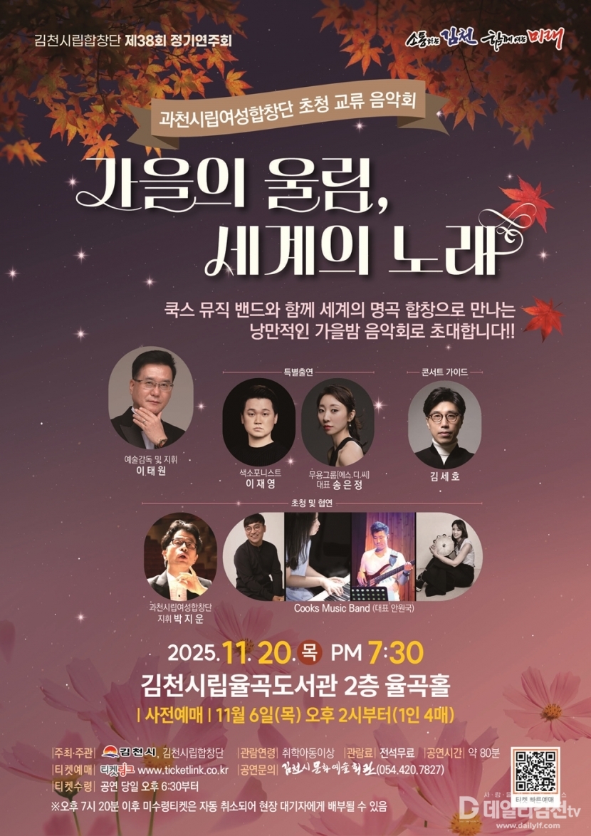 김천시립합창단과 과천시립여성합창단은 한국의 가곡부터 세계의 명곡까지 수준 높은 합창 예술의 매력을 선보이고, 색소포니스트 이재영·무용그룹 에스디씨(S.D.C.)·Cooks Music Band가 출연하여 합창과 색소폰의 서정적인 선율, 현대무용의 역동적인 움직임, 그리고 밴드의 풍성한 사운드가 어우러진 세련된 무대를 펼쳐 잊지 못할 감동과 여운을 전달하고자 한다.