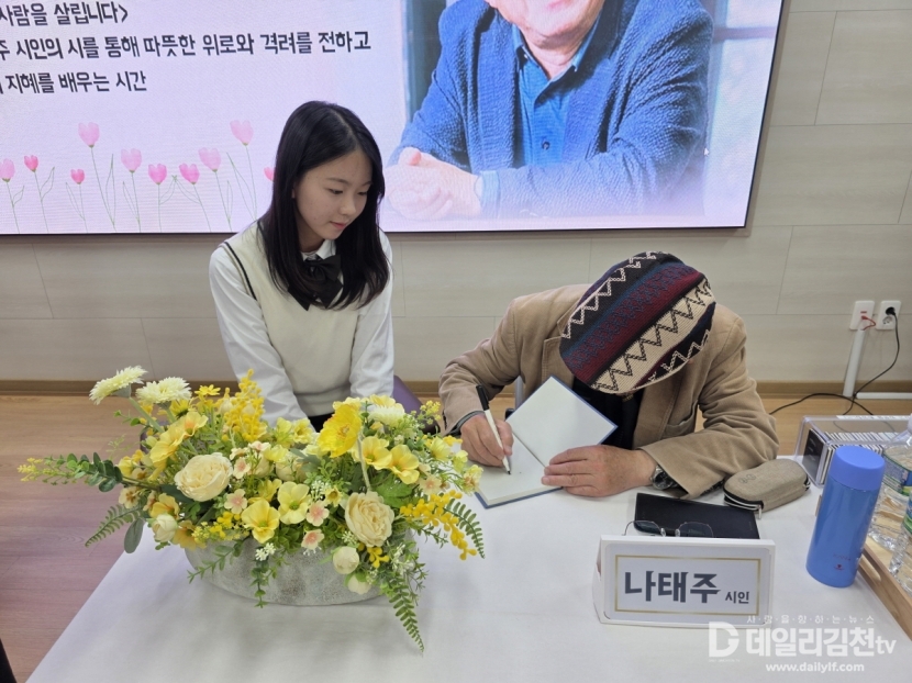 김천중앙고등학교(교장 김종현)는 지난 29일 오후 2시 30분, 시청각실에서 학생 80명과 교직원이 참여한 가운데 인문소양능력 함양과 문학교육 활성화를 위한 나태주 시인과의 만남 행사를 개최했다. 이번 행사는 국립어린이청소년도서관이 주관하는 ‘1318 책벌레들의 도서관 점령기’ 사업의 지원을 받아 진행됐다.