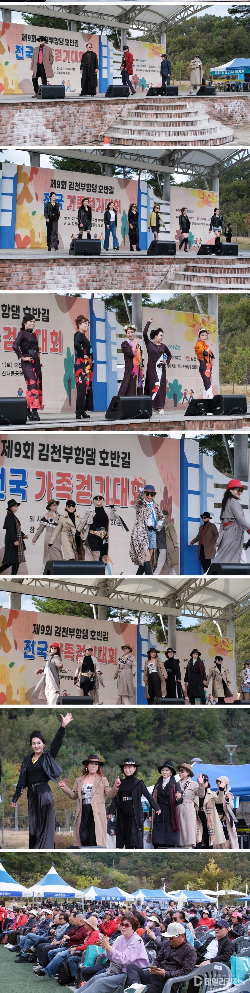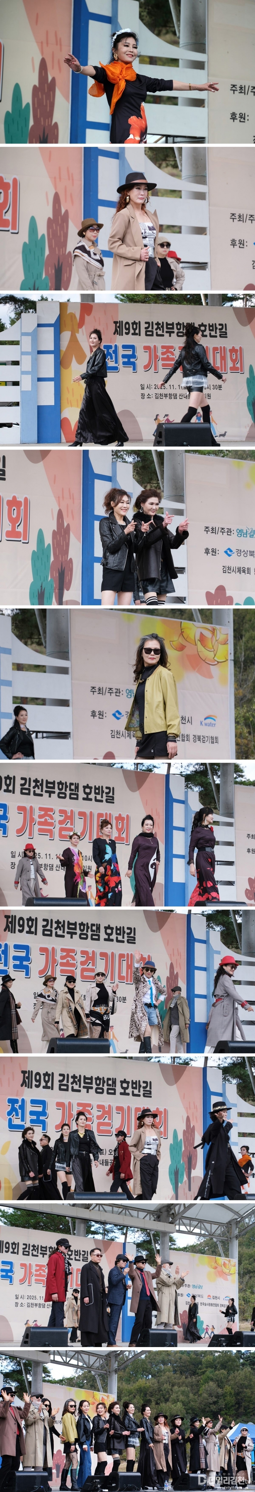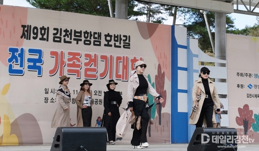 가을이 깊어가는 지난 1일 김천 부항댐 산내들공원에서 개최된 ‘제9회 김천부항댐 호반길 전국 가족 걷기대회’가 성황리에 막을 내렸다. 특히 걷기대회 후 이어진 2부 '행복콘서트' 무대는 김천시니어모델협회 회원들의 화려한 워킹쇼로 눈길을 끌었다.