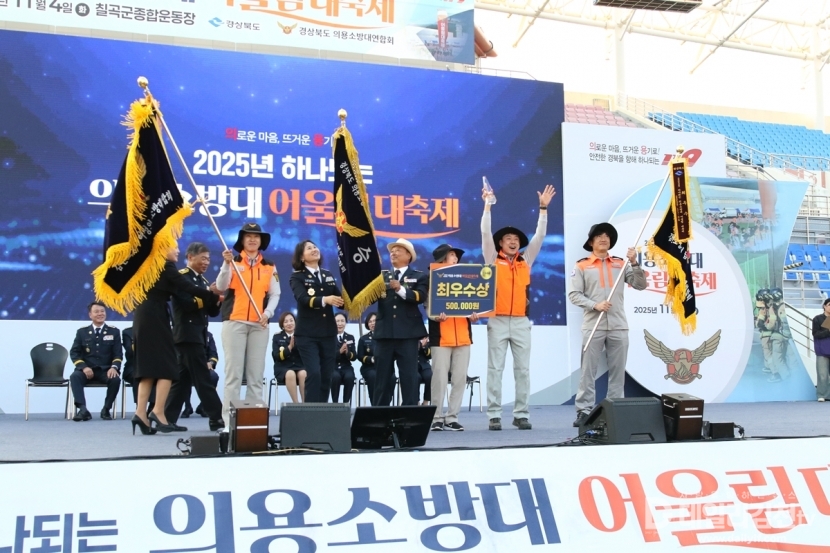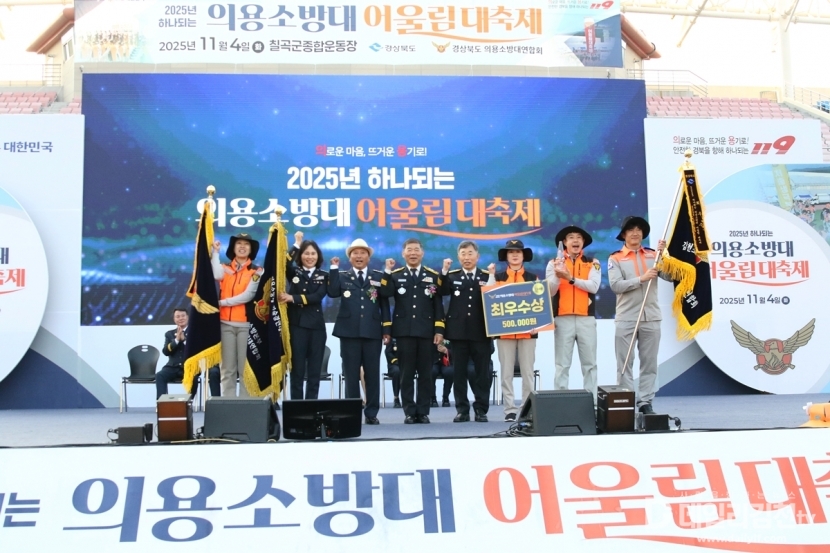 김천소방서(서장 송영환)는 지난 4일 칠곡군종합운동장에서 열린 ‘2025년 하나되는 의용소방대 어울림 대축제’에서 종합우승을 차지했다.