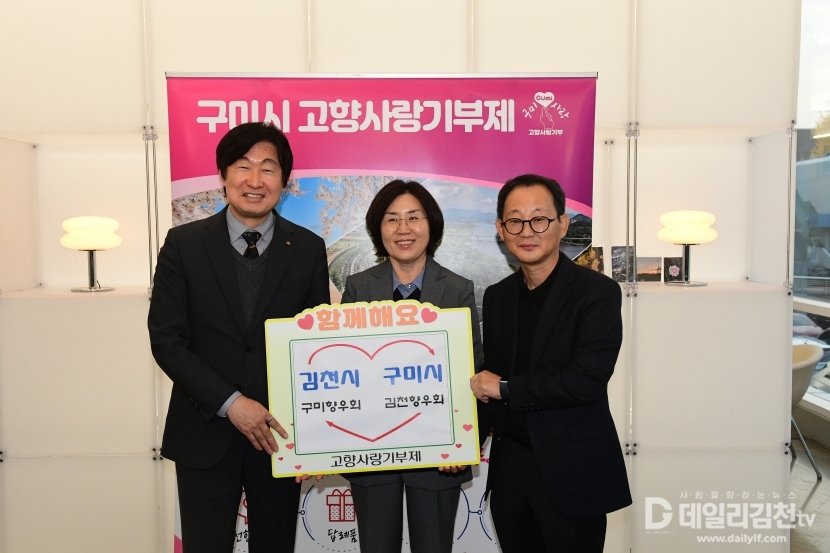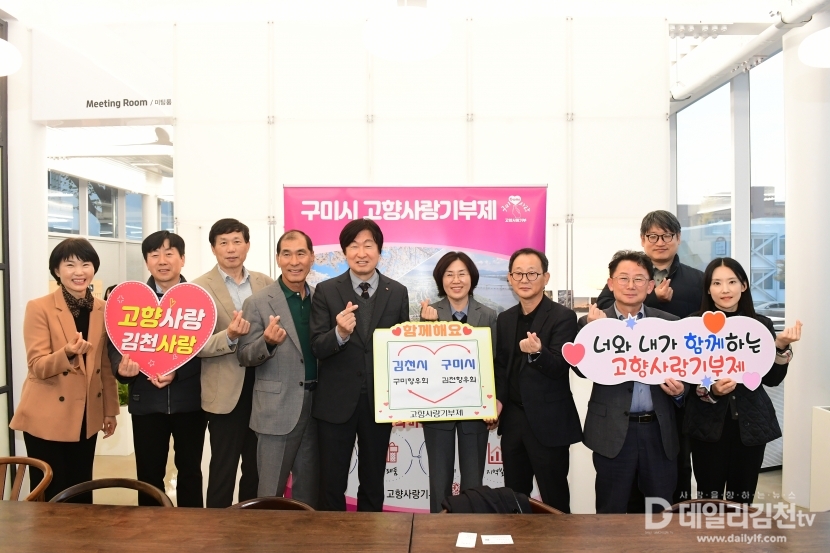 김천시청 구미향우회(회장 임재춘)와 구미시청 김천향우회(회장 송조호)는 지난 5일 구미시청에서 고향사랑기부제 상호 기부 행사를 가졌다.