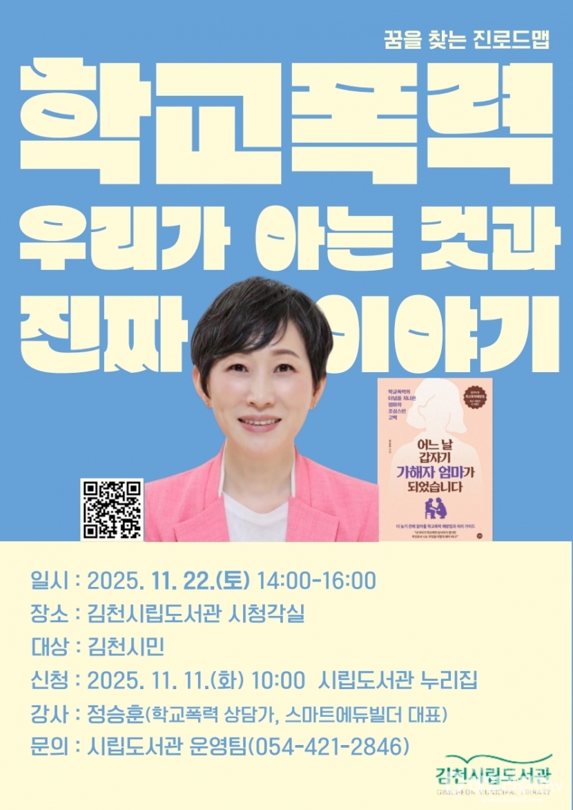 김천시립도서관(관장 이신기)에서는 오는 22일 오후 2시, 시립도서관 본관 시청각실에서 김천시민을 대상으로 ‘학교폭력, 우리가 아는 것과 진짜 이야기’를 주제로 강연을 개최한다고 밝혔다.