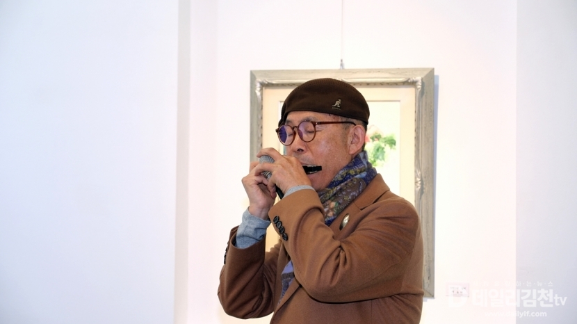 특히, 김영식 작가도 축하의 말과 함께 전시회의 결에 맞는 감미로운 하모니카 연주로 오픈식의 대미를 장식했다.