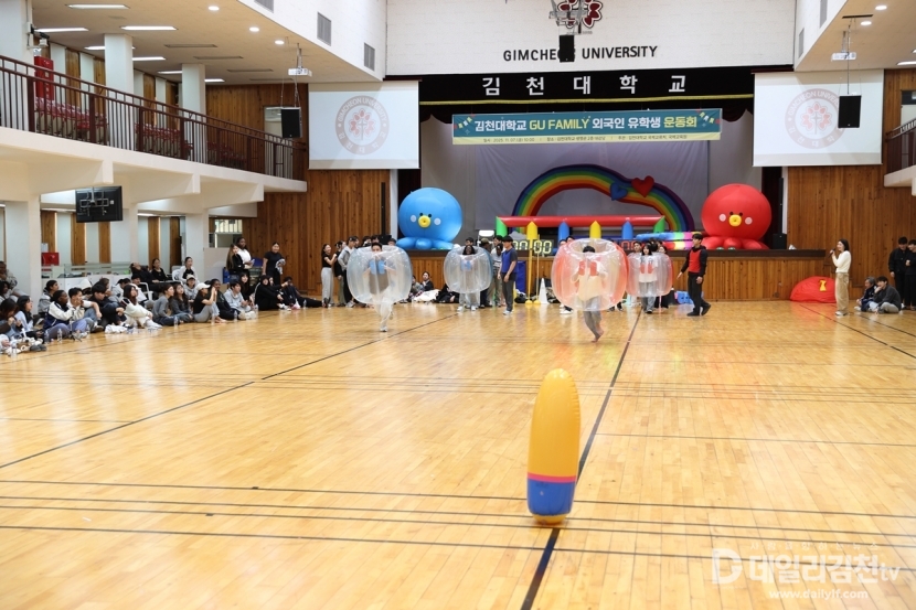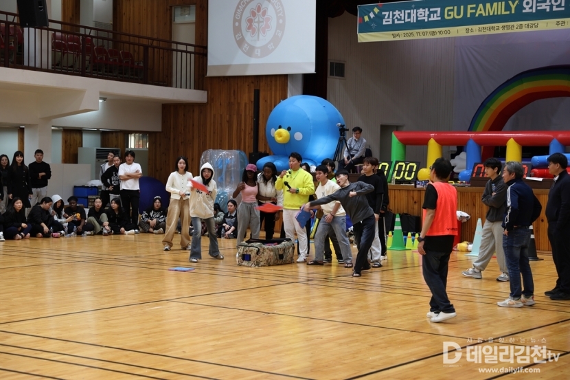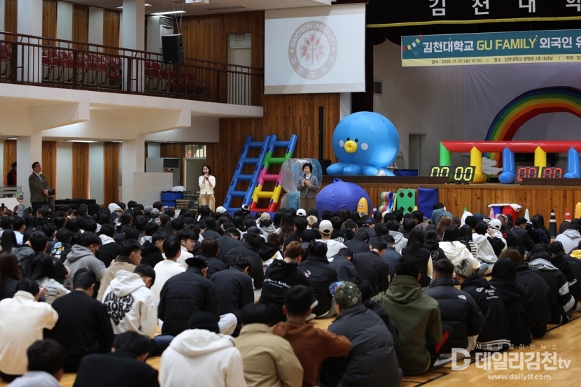 김천대학교(총장 윤옥현)는 지난 7일 생명관 2층 대강당에서 외국인 유학생 약 450여 명이 참여한 가운데 ‘2025 GU 패밀리 외국인 유학생 운동회’를 성황리에 개최했다. 이번 행사는 ‘We are the GU FAMILY!’라는 구호 아래 국적과 문화를 넘어 하나의 가족으로서 화합과 우정을 다지는 시간을 마련했다.
