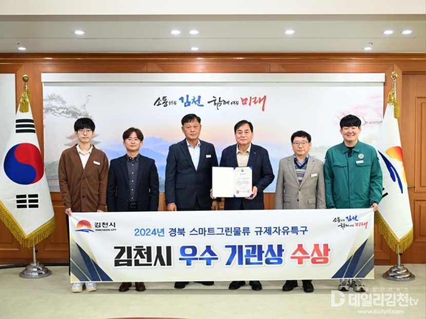 김천시(시장 배낙호)는 지난 6일 대전에서 이틀간 열린 중기부 주최 「혁신특구 ON 2025」 행사에서 스마트그린물류 규제자유특구 운영 성과를 인정받아 우수기관상을 수상했다고 밝혔다.