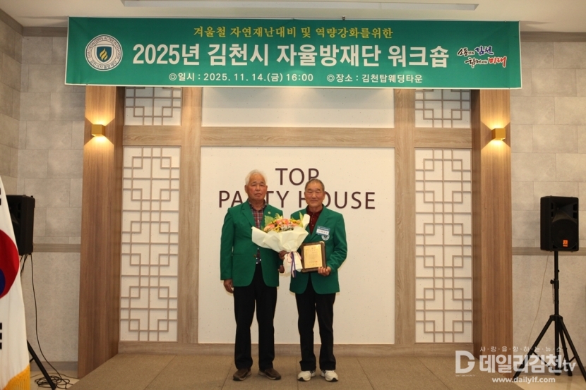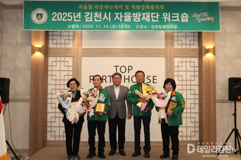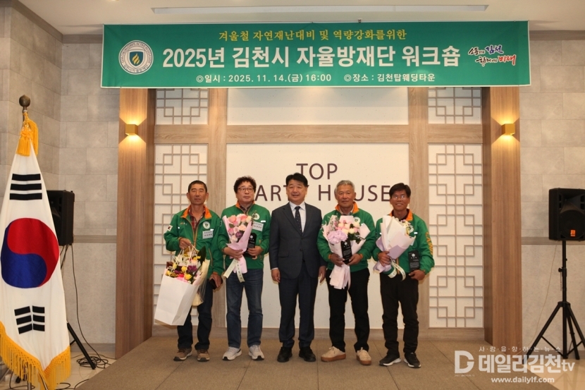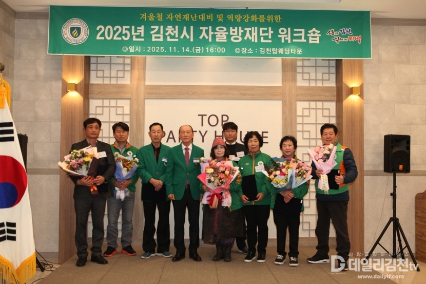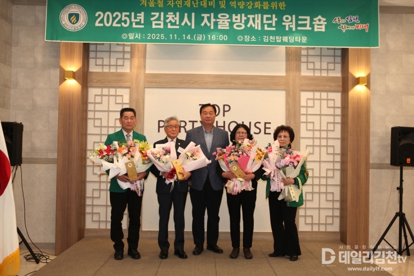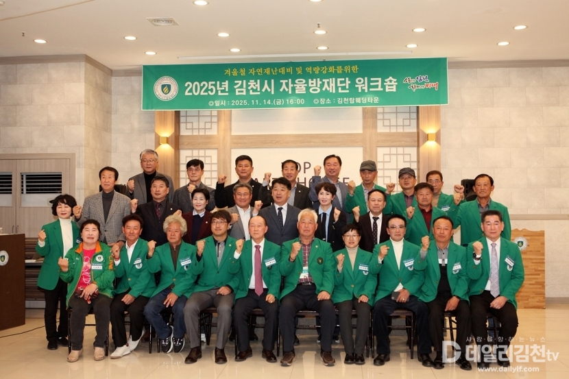 김천시는 14일 오후 4시 탑웨딩타운에서 「2025년 김천시 지역자율방재단 워크숍」을 개최했다. 이번 워크숍에는 자율방재단 단원과 관계자, 지역 내빈 등 200여 명이 참석해 성황을 이뤘다.