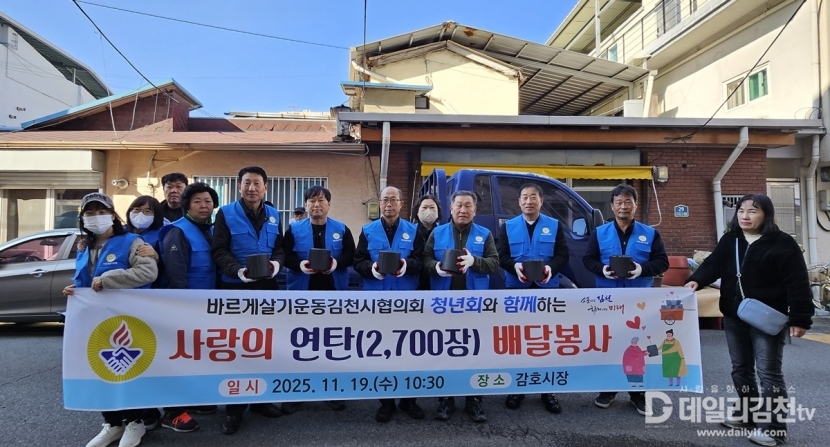 ‘사랑의 연탄 배달’은 한파에 취약한 이웃들이 따뜻한 겨울을 보낼 수 있도록 연탄을 전달하는 활동으로, 2015년도부터 바르게살기운동김천시협의회 청년회 주관으로 지속 추진되고 있다.