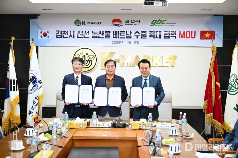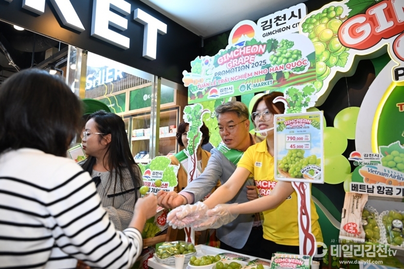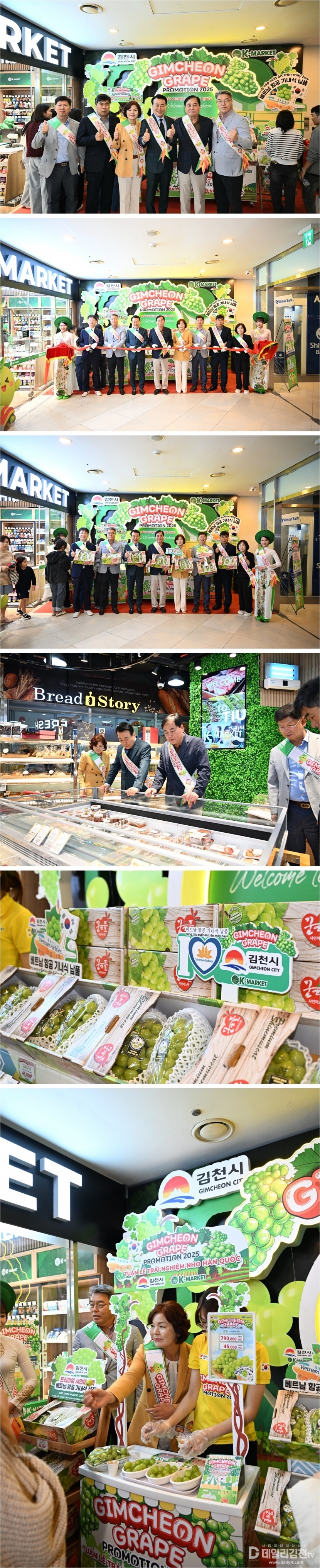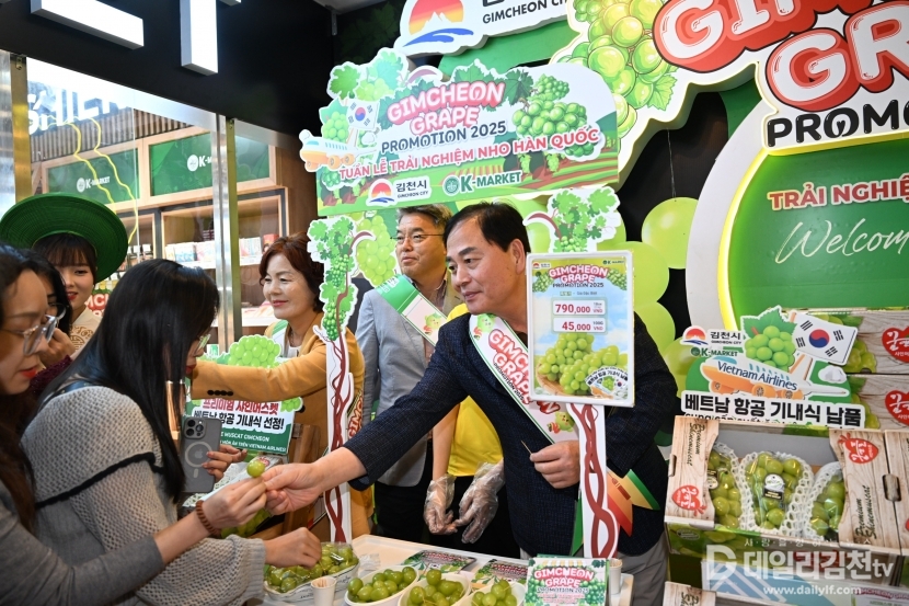 김천시(시장 배낙호)는 지난 18일 베트남 하노이 K-마켓 본사에서 김천 신선농산물의 해외시장 개척과 글로벌 수출 확대를 위한 전략적 협력체계 구축을 목적으로 K-마켓과 수출협약을 체결했다. 동시에 김천 포도 판촉 행사도 성황리에 진행했다.