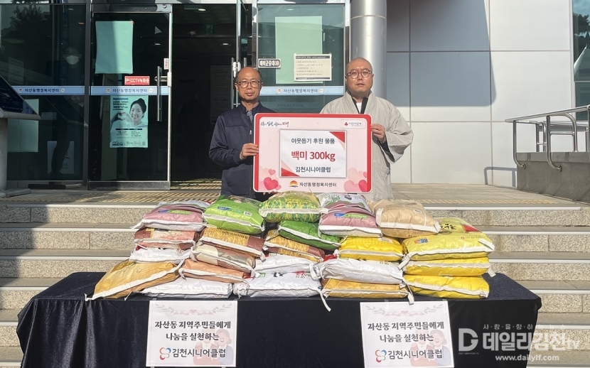 이번 기부는 지난 14일 감호지구 은빛복지센터로 김천시니어클럽 사무실을 이전하며 진행된 개소식에서 화환 대신 축하의 마음으로 전달받은 쌀을 지역사회에 환원하자는 취지에서 추진되었다. 기부된 쌀은 자산동 내 저소득 가정과 돌봄이 필요한 어르신들에게 전달될 예정이다.