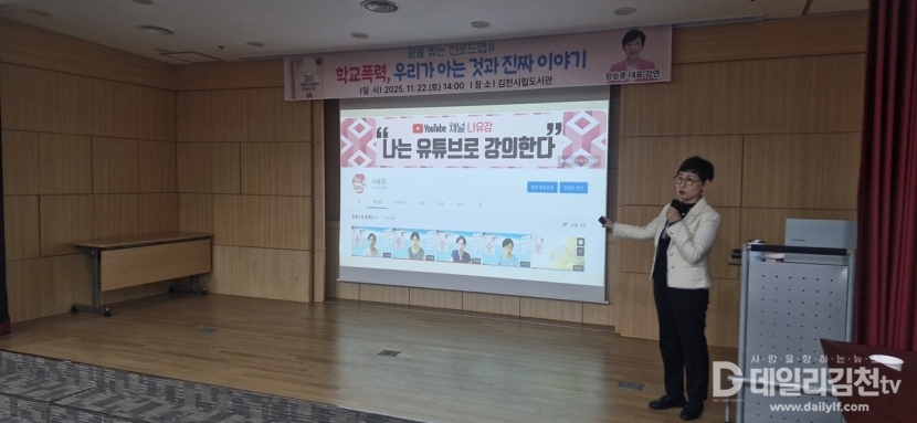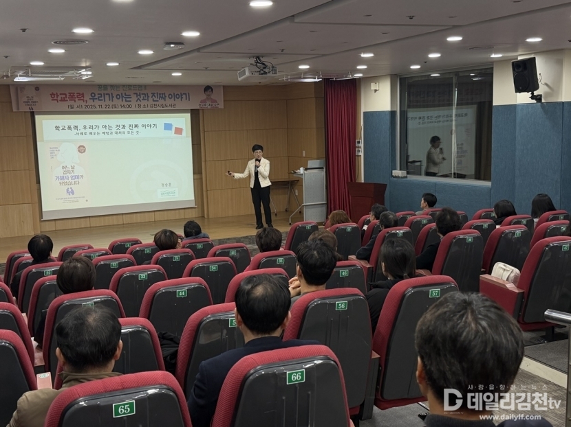 김천시립도서관은 지난 22일 김천시민을 대상으로 학교폭력에 대한 이해와 대응을 주제로 한 강연 ‘학교폭력, 우리가 아는 것과 진짜 이야기’를 성공적으로 마무리했다고 밝혔다.