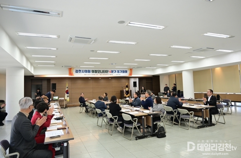 김천시의회(의장 나영민)는 24일 김천상공회의소 대회의실에서 의정모니터단 4분기 정기회의를 개최했다.